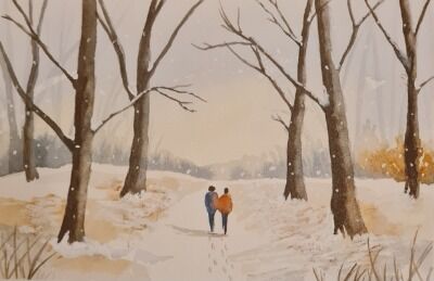 Painted with inktense paints on canvas for the latest competition theme. I masked out the trees to paint the sky in first. I love the shadows on the snow and can just imagine a winter walk along the path there. Delightful. It was voted as joint winner by the public vote and then it sold as well. Wonderful.
